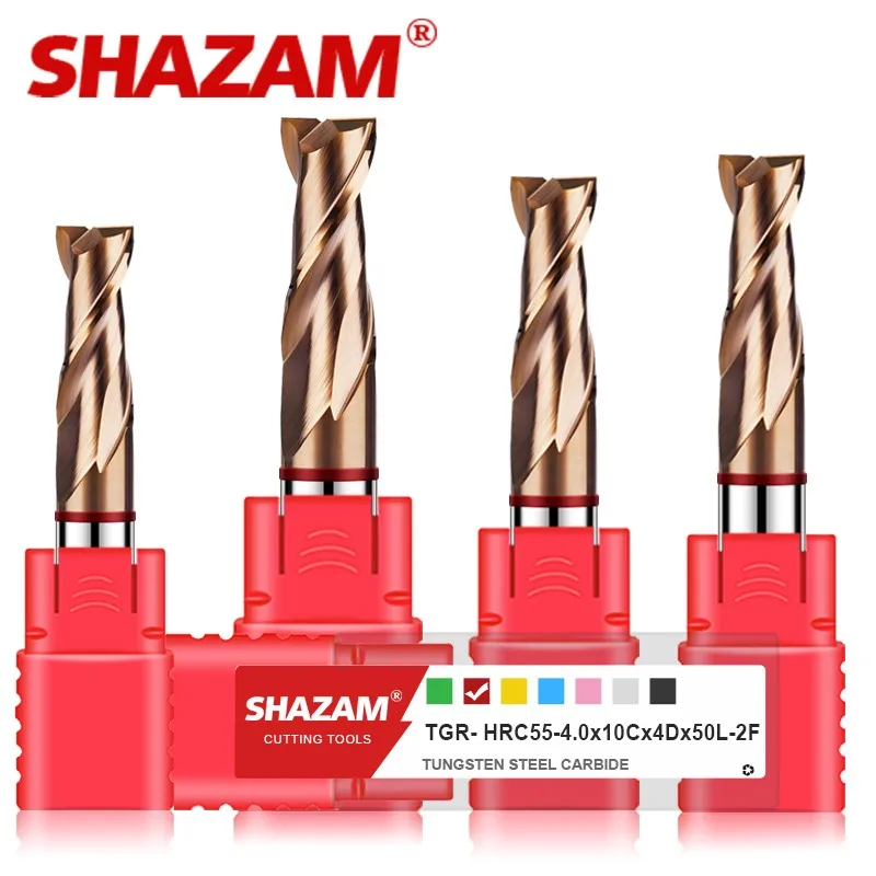 SHAZAM TGR-HRC55 2F Color Circle Flat End Mill Tungsten Steel Carbide Alloy Coating Milling Cutter CNC Machining Endmills Tools