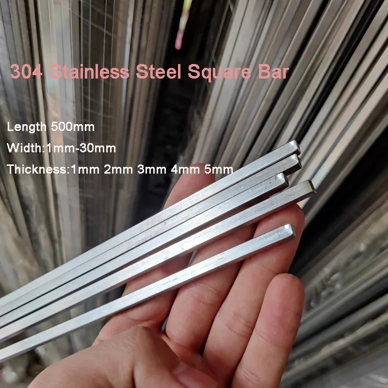 304 Stainless Steel Square Bar Flat Steel Bar Solid Small Steel Bar Length 500mm Thick 1mm 2mm 3mm 4mm 5mm Customized Service