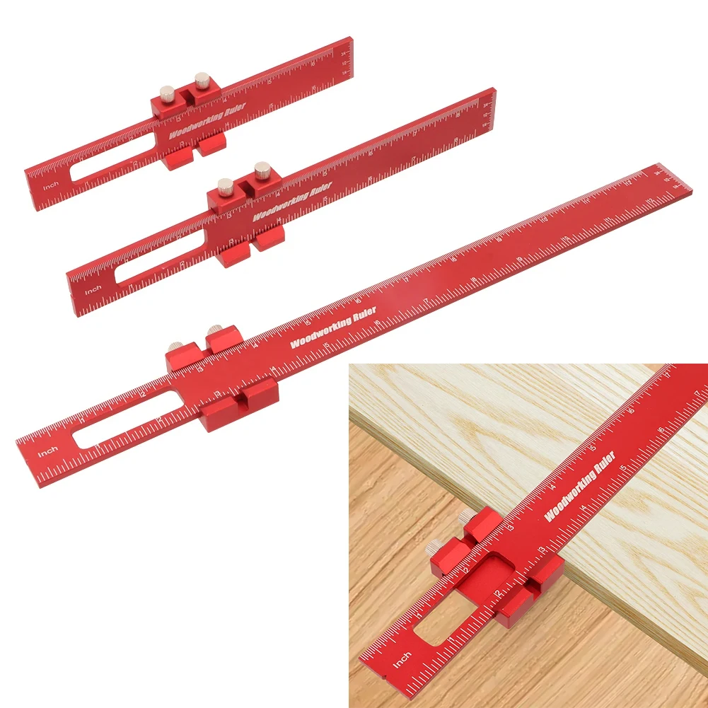 Woodworking Tools Ruler - Pocket Ruler Layout Tool Aluminum Precision Ruler with T-Track Metal Slide Stops, Inch and Metric Scale