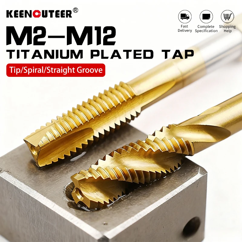 Metric Titanium Plated HSS Spiral Point Tap Spiral Flute Tap M2 M2.5 M3 M4 M5 M6 M7 M8 M10 M12 Machine Plug Tap Screw Thread
