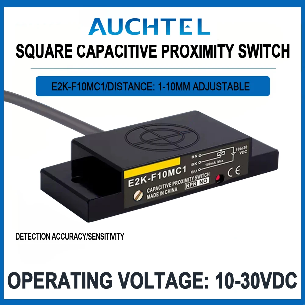 AUCHTEL Square Capacitive Proximity Switch Sensor E2K-F10MC1 Level Non-metallic Detection Sensor three-wire NPN PNP