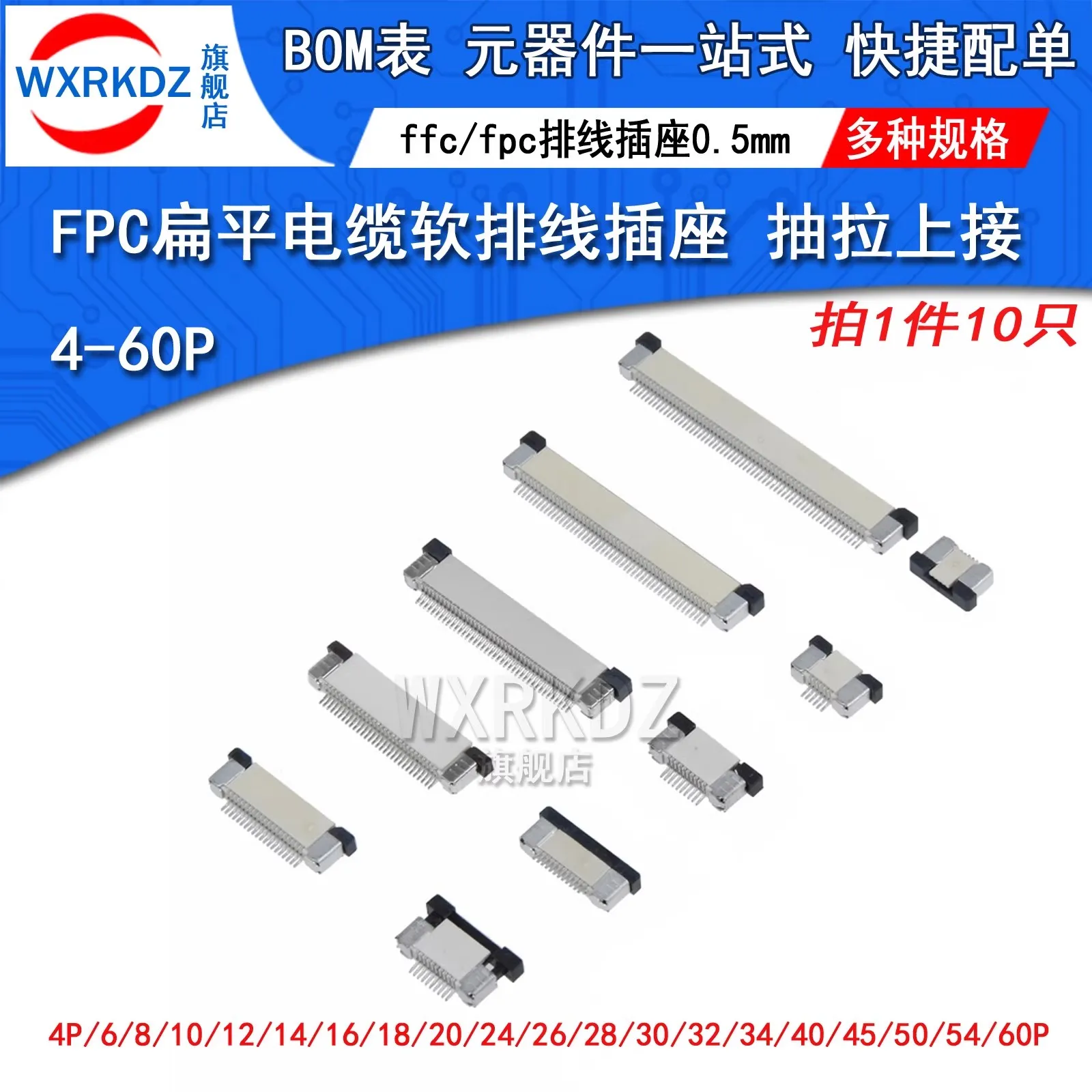 10pcs 0.5mm Pitch FPC Flat Flexible Cable FFC Connector 4P 5 6 8 9 10 12 14 16 20 22 24 30 32 34 40 45 50 60 Pin Top Contact SMT