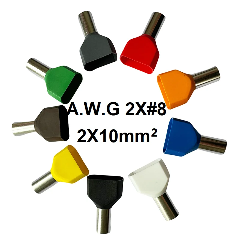 20PCS 2x10mm² Guage 2x8 Copper Insulated Ferrules Cable Lug Dual Cables Insert End Connector Terminal Cold Crimping TE10-14