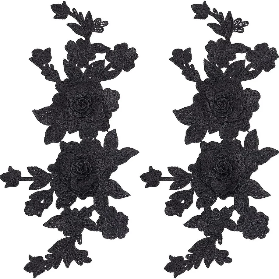 1 Piece of Black and White Embroidered Roses Hand Sewn Patches DIY Clothing Accessories Patches