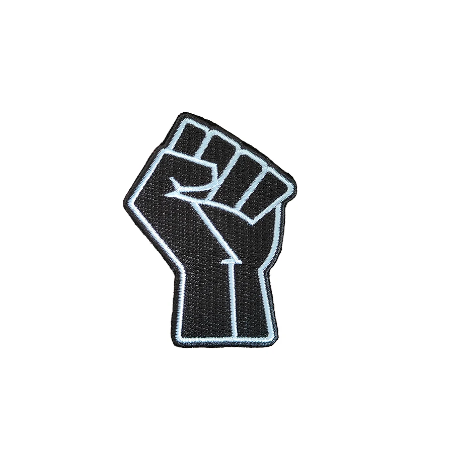 Embroidered Patch for Embroidery, Black Background, White Edge, raised Fist Shape, Iron-on