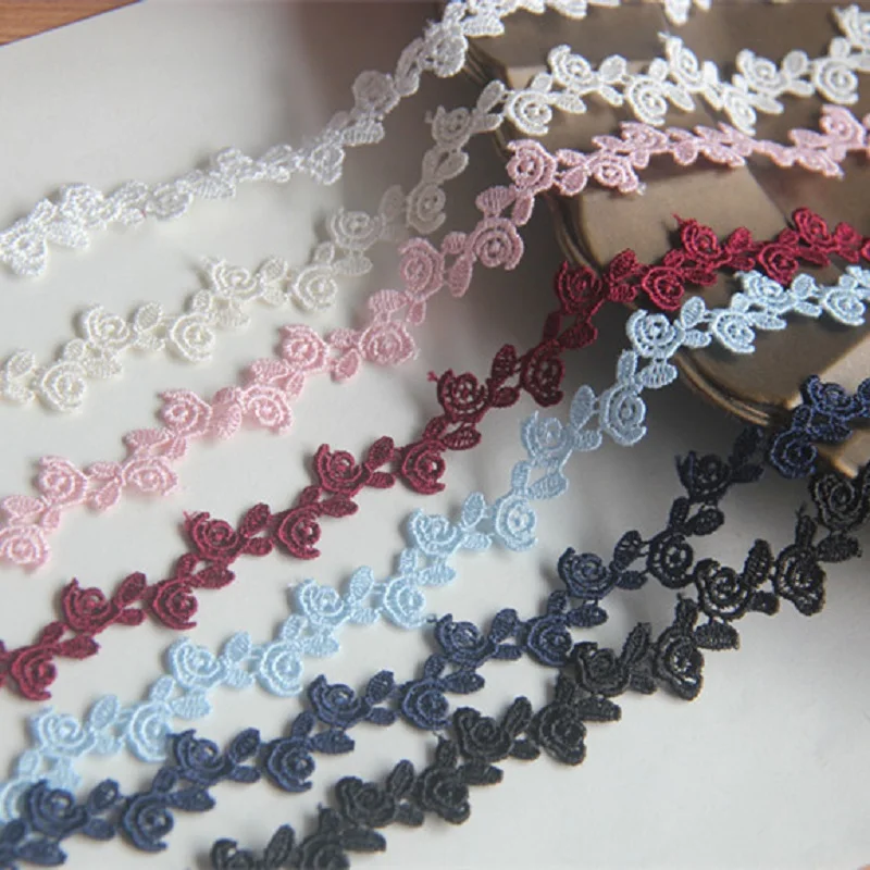 Floral Rose Embroidered Water Soluble Lace Ribbon, DIY Apparel Sewing Fabric, Black and White, Handmade Crafts, 1.5cm Wide, 2Yar