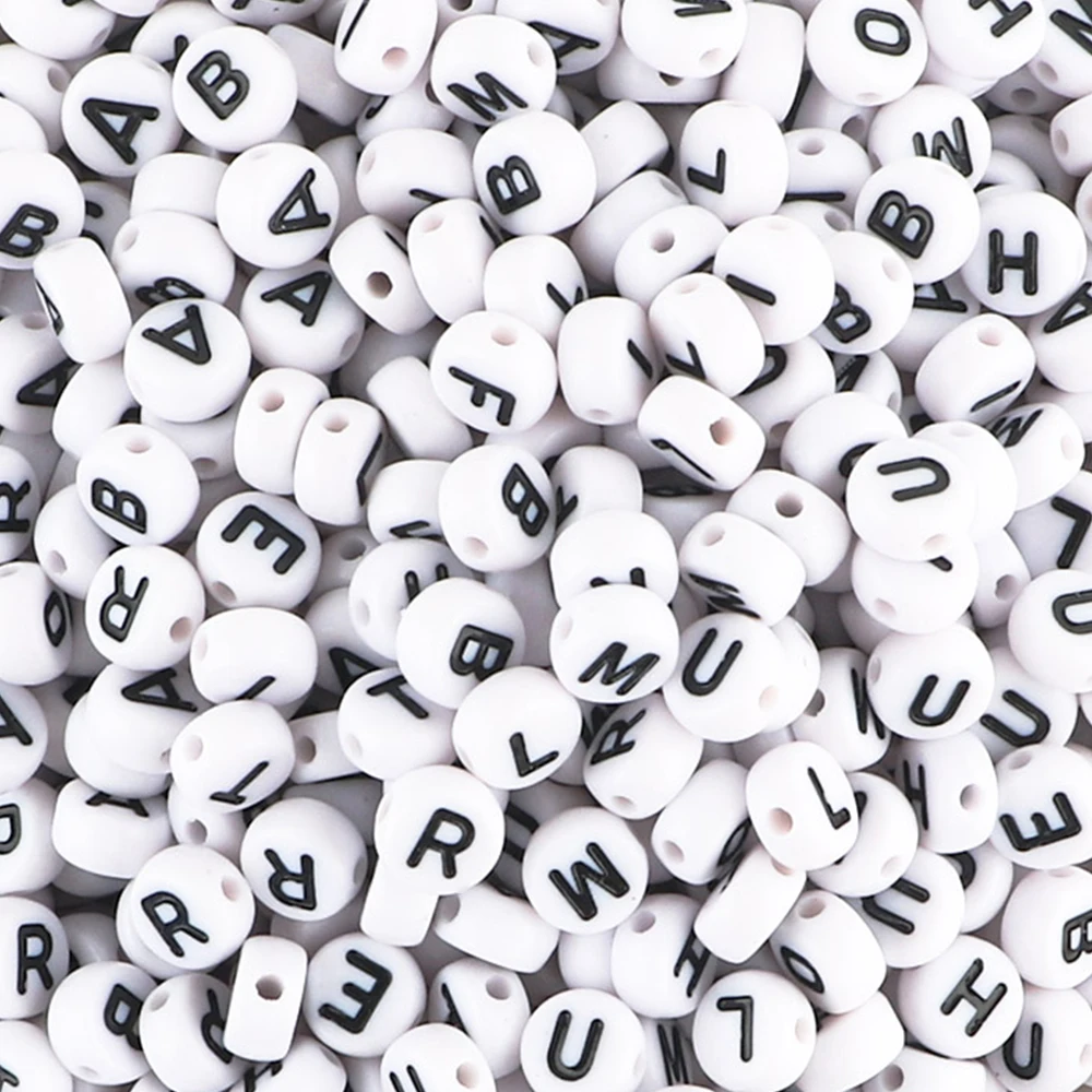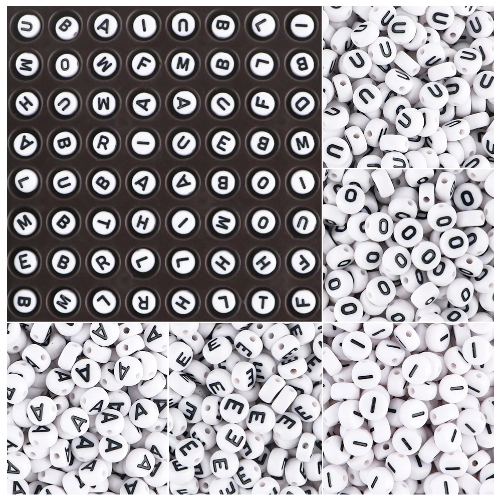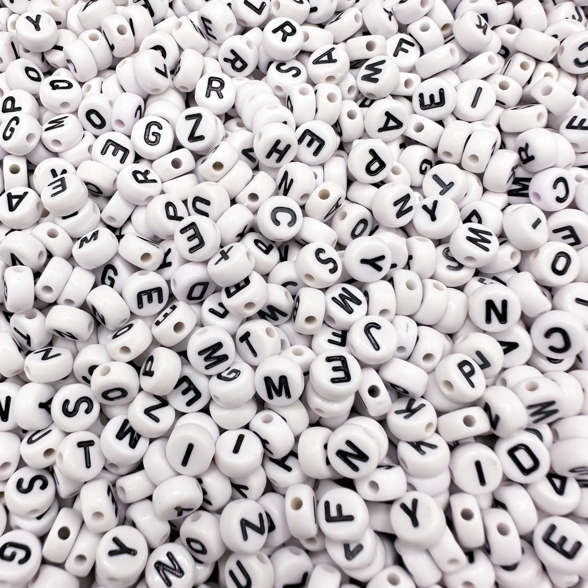 50/100/200pcs/Lot 7x4mm White A-Z Round Alphabet Acrylic Letters Beads Loose Spacer For Jewelry Making DIY Bracelet Accessories