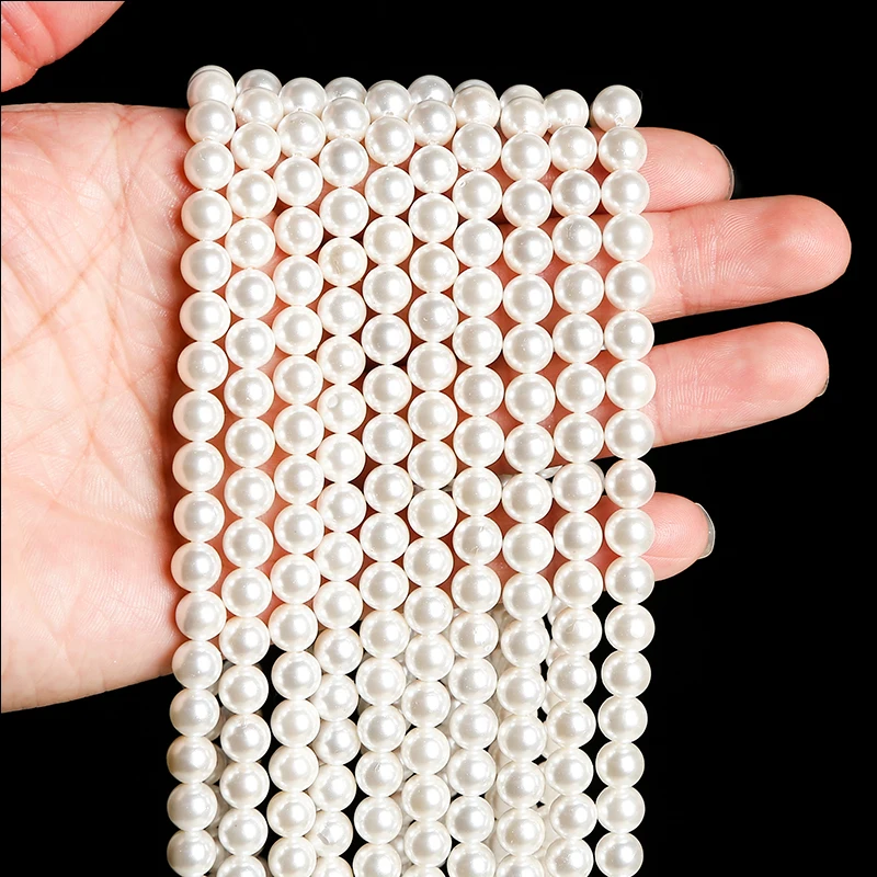 3 4 6 8 10mm White Imitation Shell Beads Round Loose Spaced Beads For Jewelry Making DIY Bracelet Necklace Accessory 15" Inch
