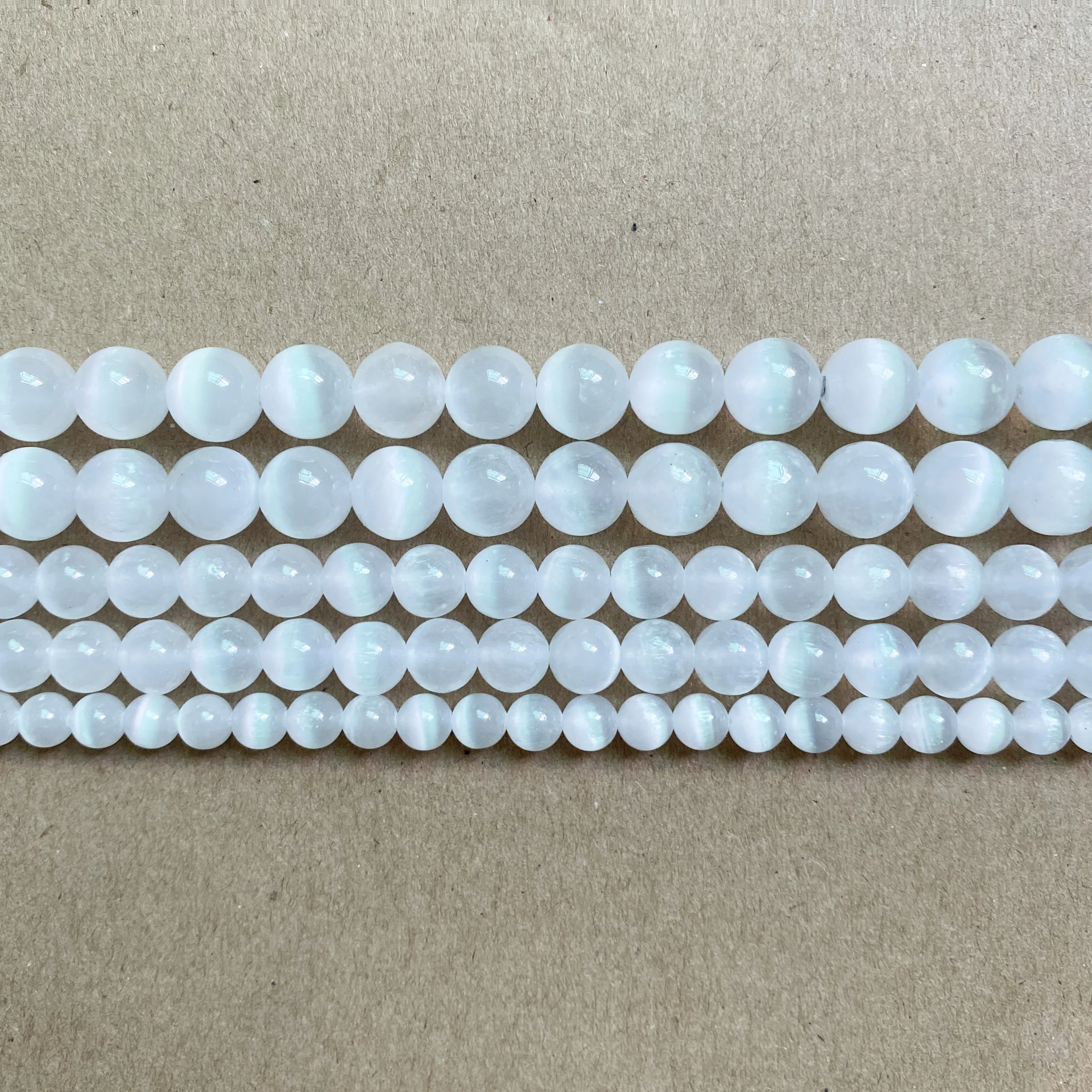Genuine Semi-precious Natural AA Quality White Selenite Clear Cat Eye Gypsum Stone Round Loose Beads 15" 6 8 10 MM For Jewelry