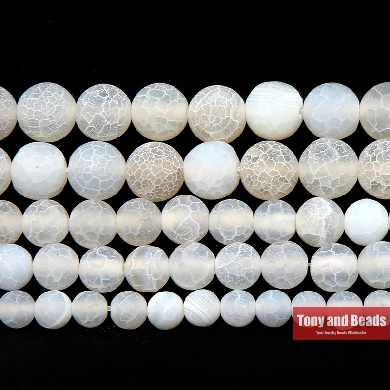 Natural Stone Frost Crab White Agate Round Loose Beads 4 6 8 10 12MM Pick Size For Jewelry Making