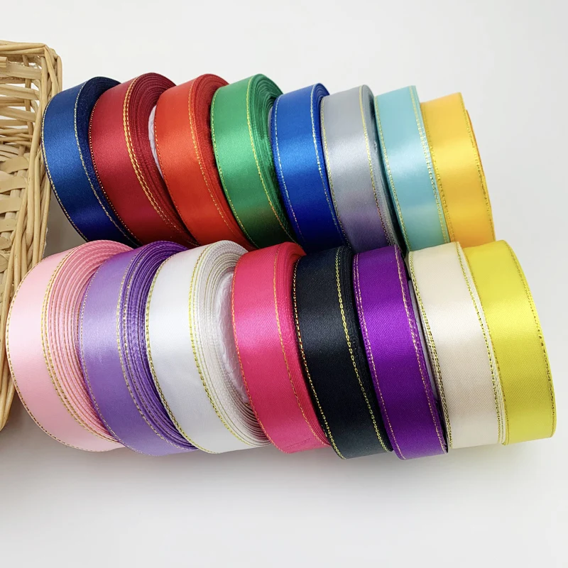 (25 Yards/roll) 20mm White Satin Ribbon Gold Edge Wholesale High Quality Gift Packaging Handmade DIY Ribbon Roll