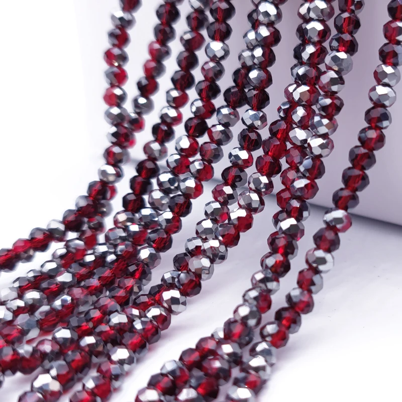 2 3 4 6 8mm Faceted Red Plated Glass Beads Round Crystal Loose Beads for Jewelry Making Accessories Necklace Bracelet DIY