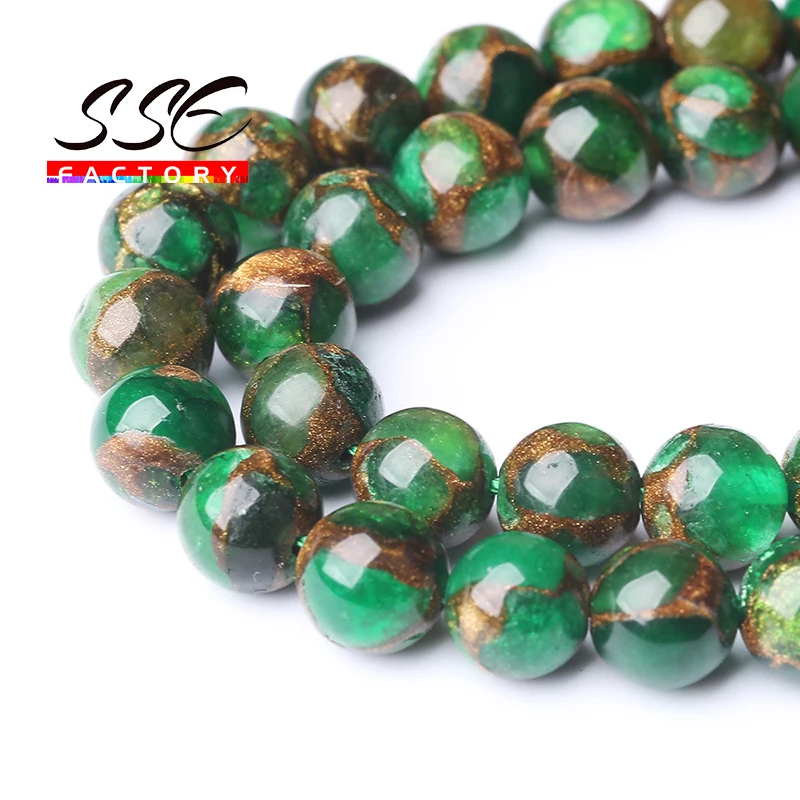 Green Cloisonne Round Stone Beads Natural Spacer Beads For Jewelry Making DIY Bracelet Accessories 15''strand 6/8/10mm Wholesale