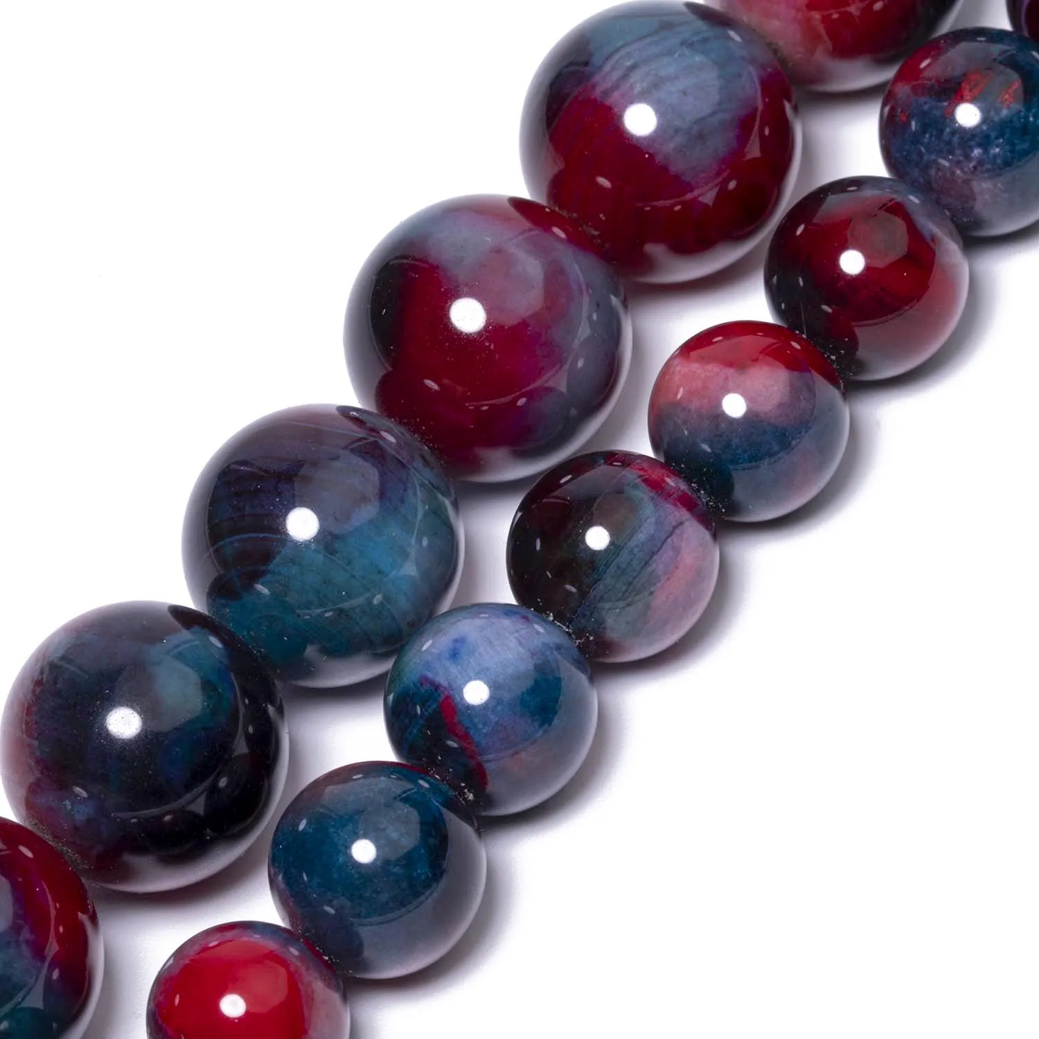 10/14mm Red Green Paintings Agate Beads Natural Stone Round Spacer Beads for Jewelry Making DIY Energy Bracelets Accessories