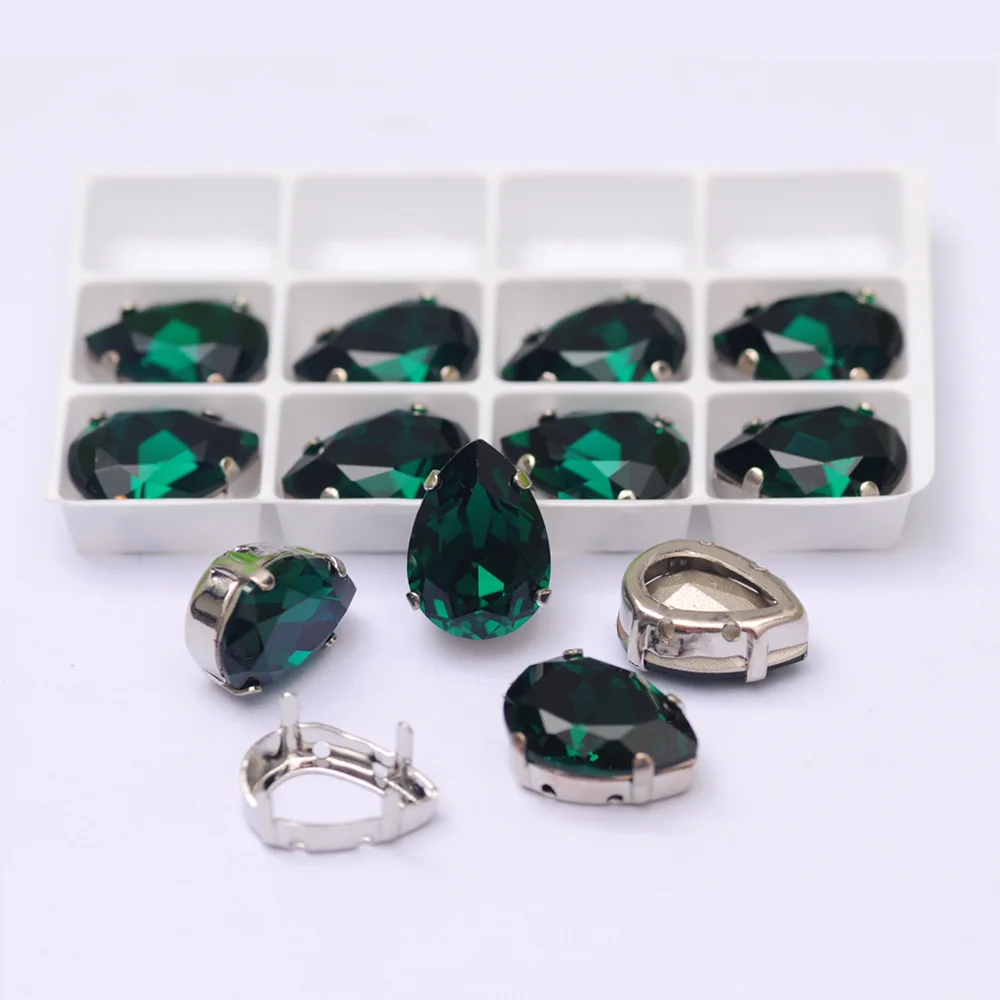 CTPA3bI Emerald Green Glass Fancy Stones Pointback DIY Crafts Sew On Crystal Rhinestones Jewels Beads For Gym Suit Decoration