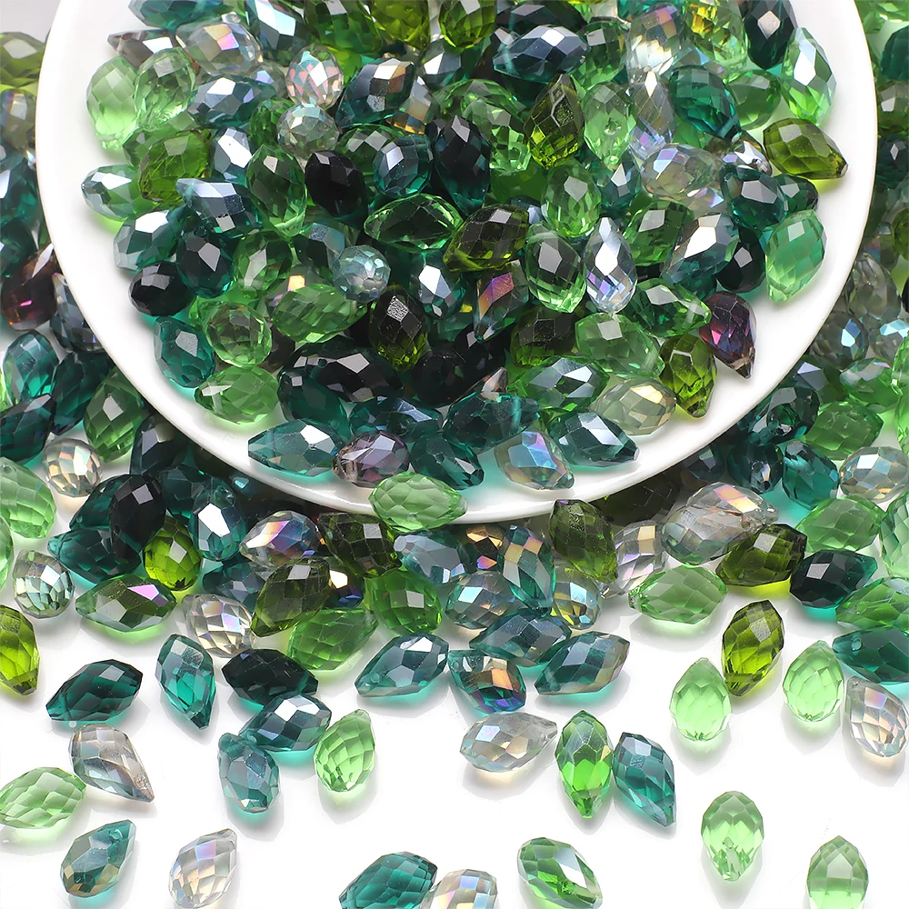 30Pcs/Lot Green Crystal Glass Faceted Teardrop Loose Beads Crafts 8x13mm for Jewelry Making Necklace Garment DIY Accessories