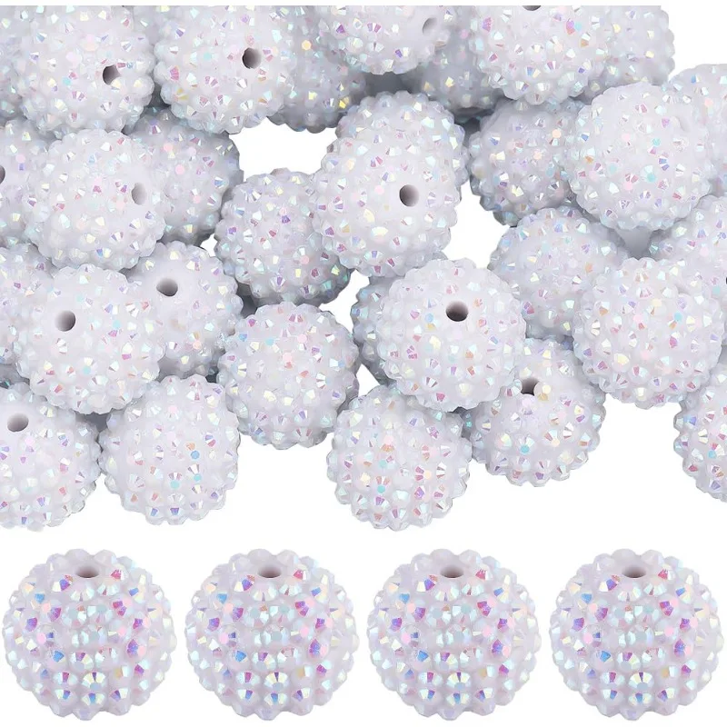 40Pcs Chunky Resin Rhinestone Beads 20mm White Rhinestone Round Beads Disco Ball Beads Chunky Bead Bulk Bubblegum Beads Spacer