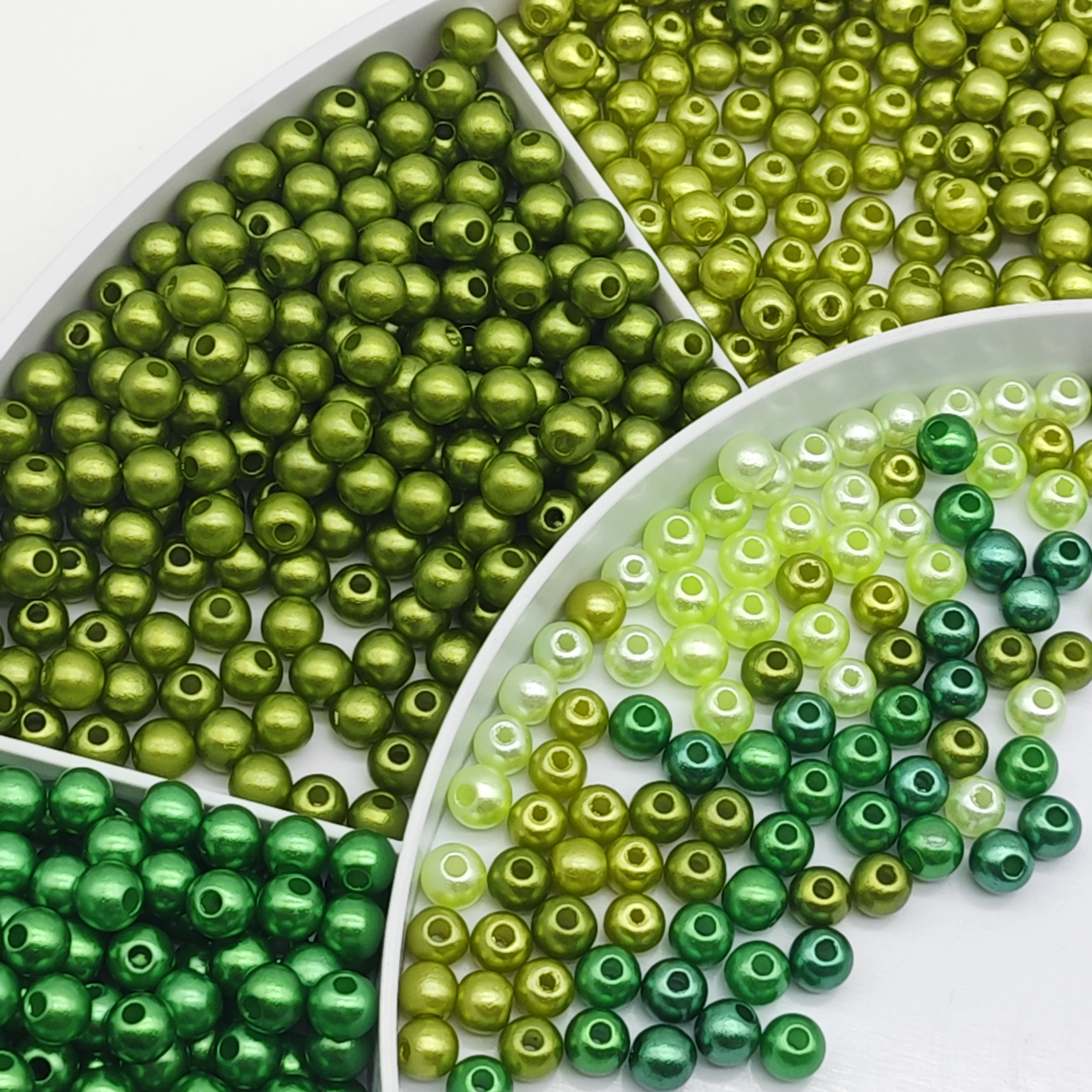 Pearl Beads with Hole 6mm-300Pcs Green Series Beads & Bead Assortments Round ABS Loose Pearl Beads with Hole for Crafting DIY