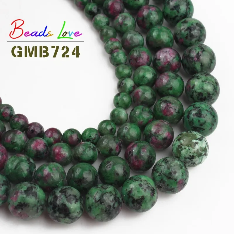 6-12MM Natural Stone Green Rubys Epidote Zoisite Round Beads for Needlework Jewelry Making DIY Bracelet Necklace Accessories