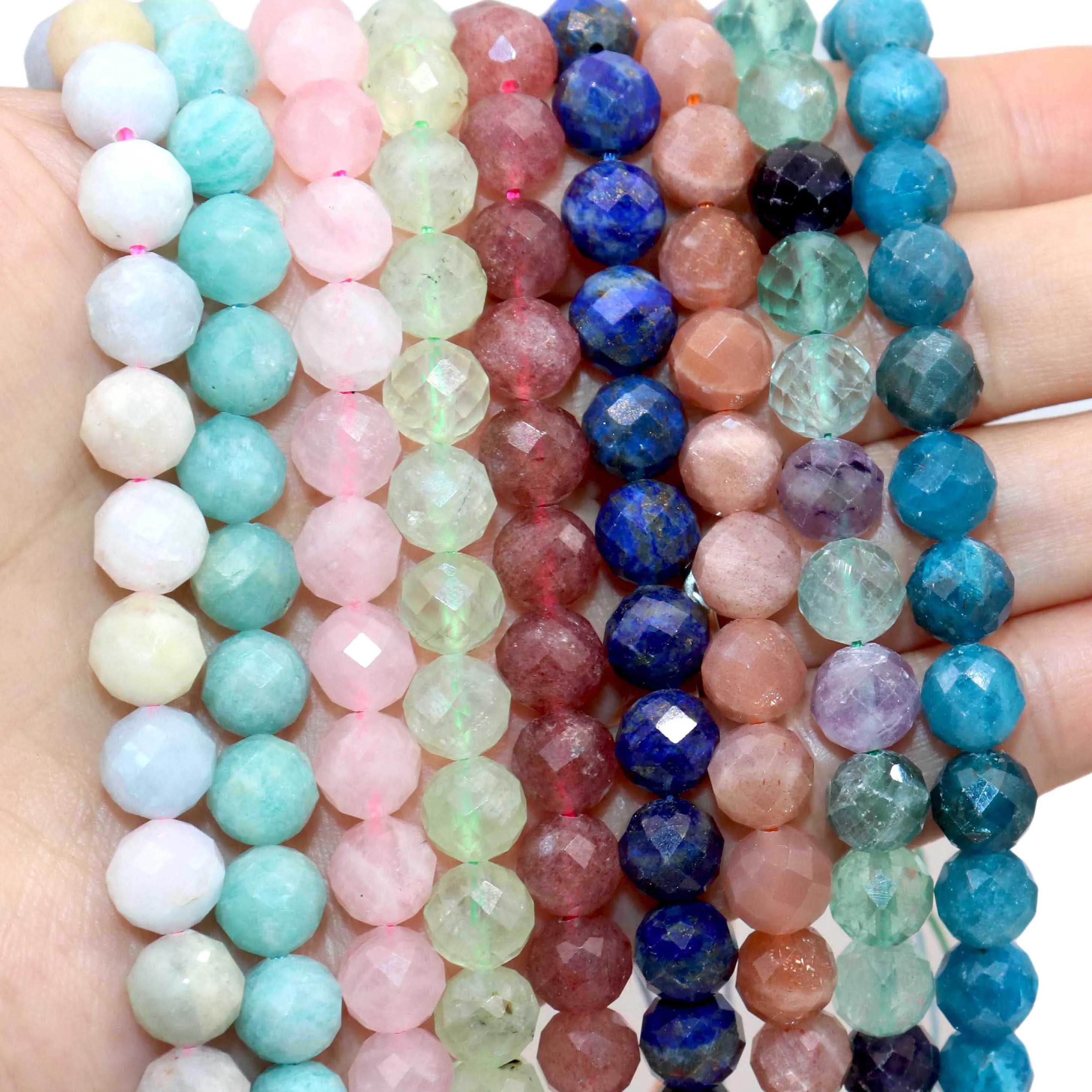 6/8/10MM Natural Stone Faceted Amethysts Aquamarines Amazonite Round Spacer Beads For Jewelry Making DIY Bracelet Necklace