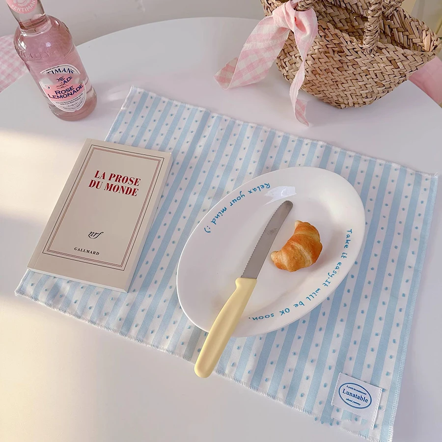 Korean Retro Blue Plaid Tablecloth Placemats Table Mat Food Posing Background Cloth Insulation Pad Home Decoration Accessories