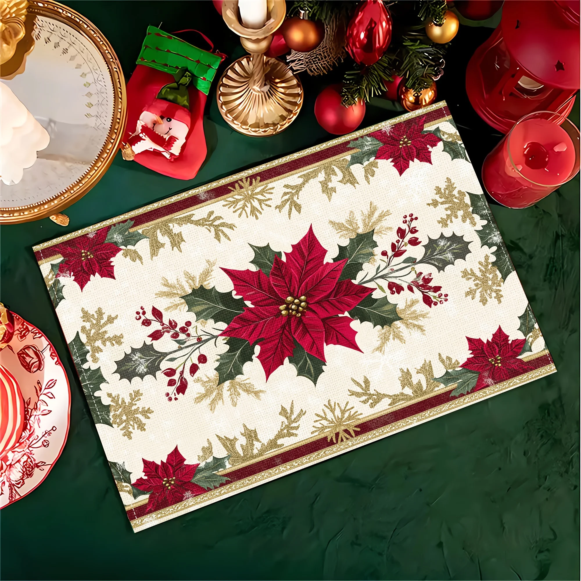VIKAMA 4-Piece Christmas Red & Gold Poinsettia Placemats Holiday Gathering Home Dining Table Decor Accessories Party Decor