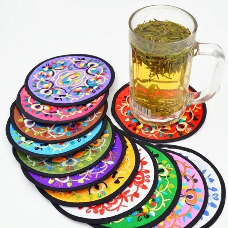 4PCS/set Embroidery Cloth Table Chinese Style Protective Mat Coaster Coffee Cup Mat Placemat Color Random