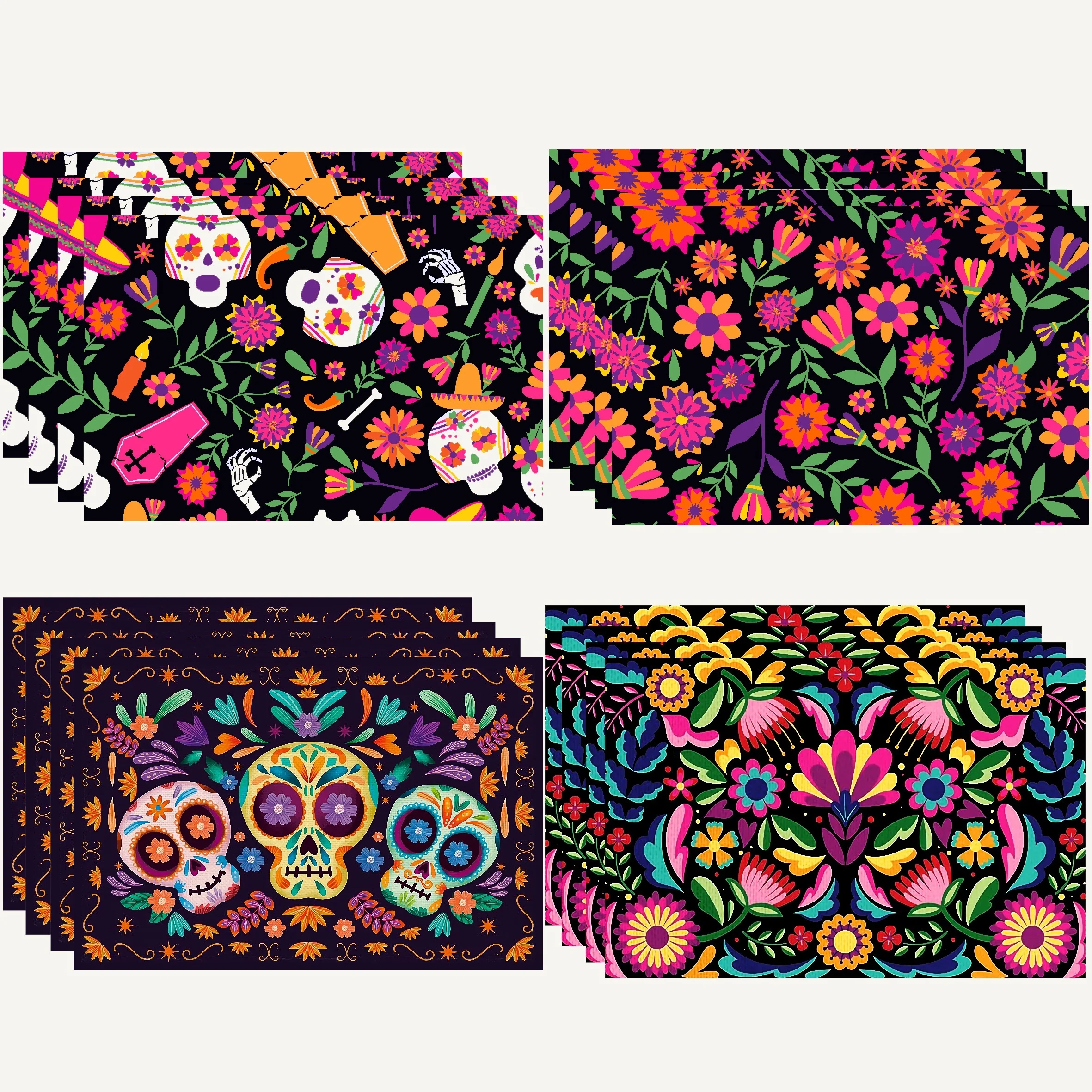4pcs Table Mat Mexican Style Colorful Skull Placemats Day Of The Dead Decoration And Supplies For Home Halloween Decor