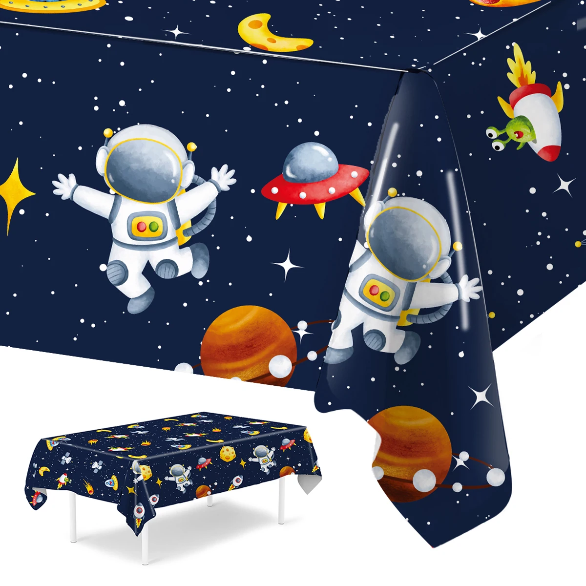 Planet Astronaut PlasticTablecloth Space Birthday Table Decoration Blue Galaxy Space Theme Tablecloth Baby Shower Decoration