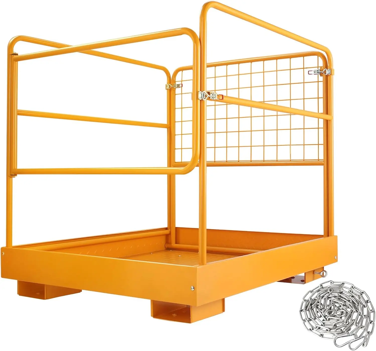 Forklift Safety Cages with One Chain, 36x36 Inches Forklift Cages 1200LBS Capacity Man Lift Basket Pallet Forks Work Platform