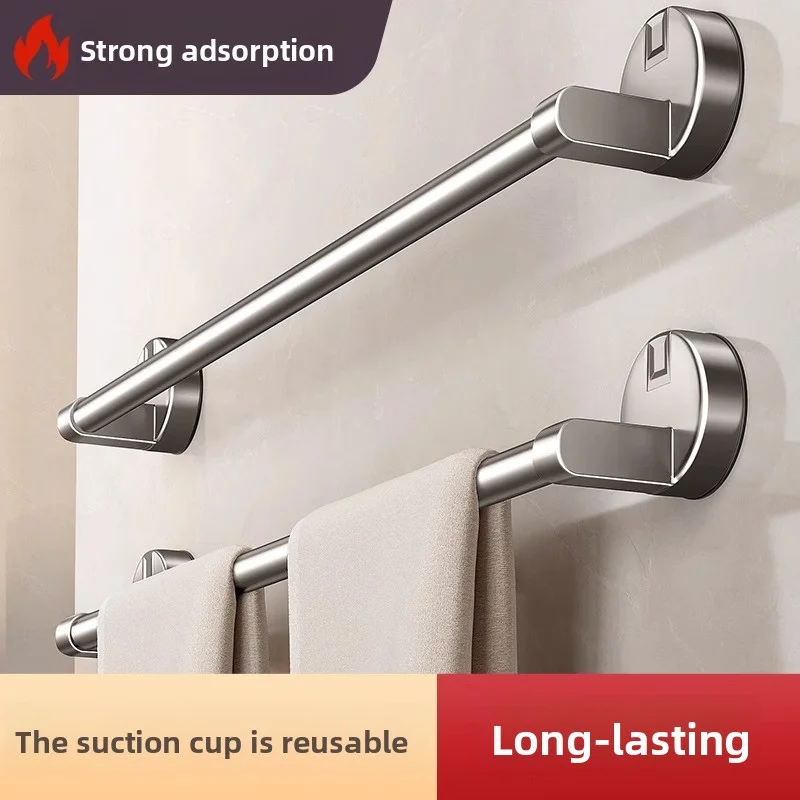 No-Drill Suction Cup Towel Rack Bathroom Storage Shelf Wall-Mounted Towel Rod Holder for Bathroom Organization