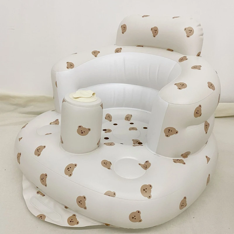 Baby Inflatable Sofa Children Puff Portable Bath Chairs PVC Multifunctional Seat Practice Sitting Bath Stool