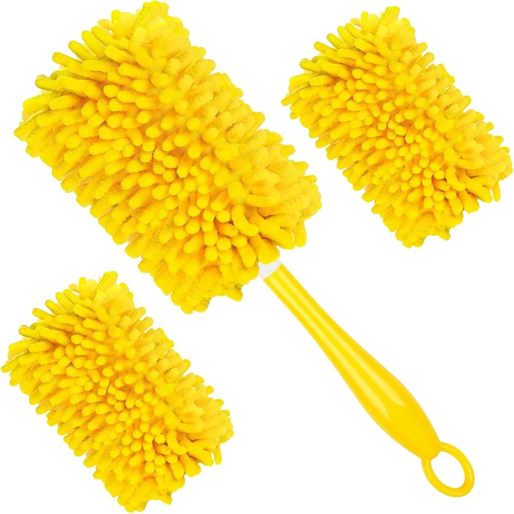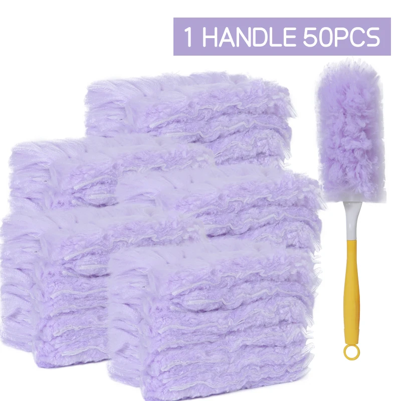 2/4PCS Microfiber Dust Cleaning Set Reusable Duster Refills with Swiffer Duster Handle Microfiber Ceiling Fan Duster Pads
