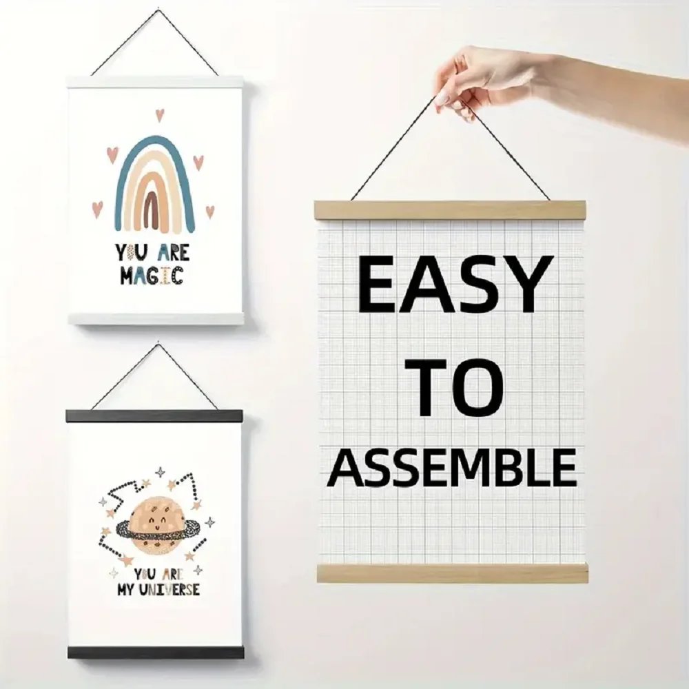 2130 40 50cm Magnetic Poster Hanger Teak Pine Wood Scroll Painting Frame 5 Colors Wood Photo Frame Black White Canvas Frame