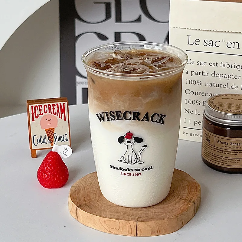 Ins Korean Style Glass Cup Coffee Cup Cold Extract Cup Latte Breakfast Household Heat Resistant Microwave Oven Glass