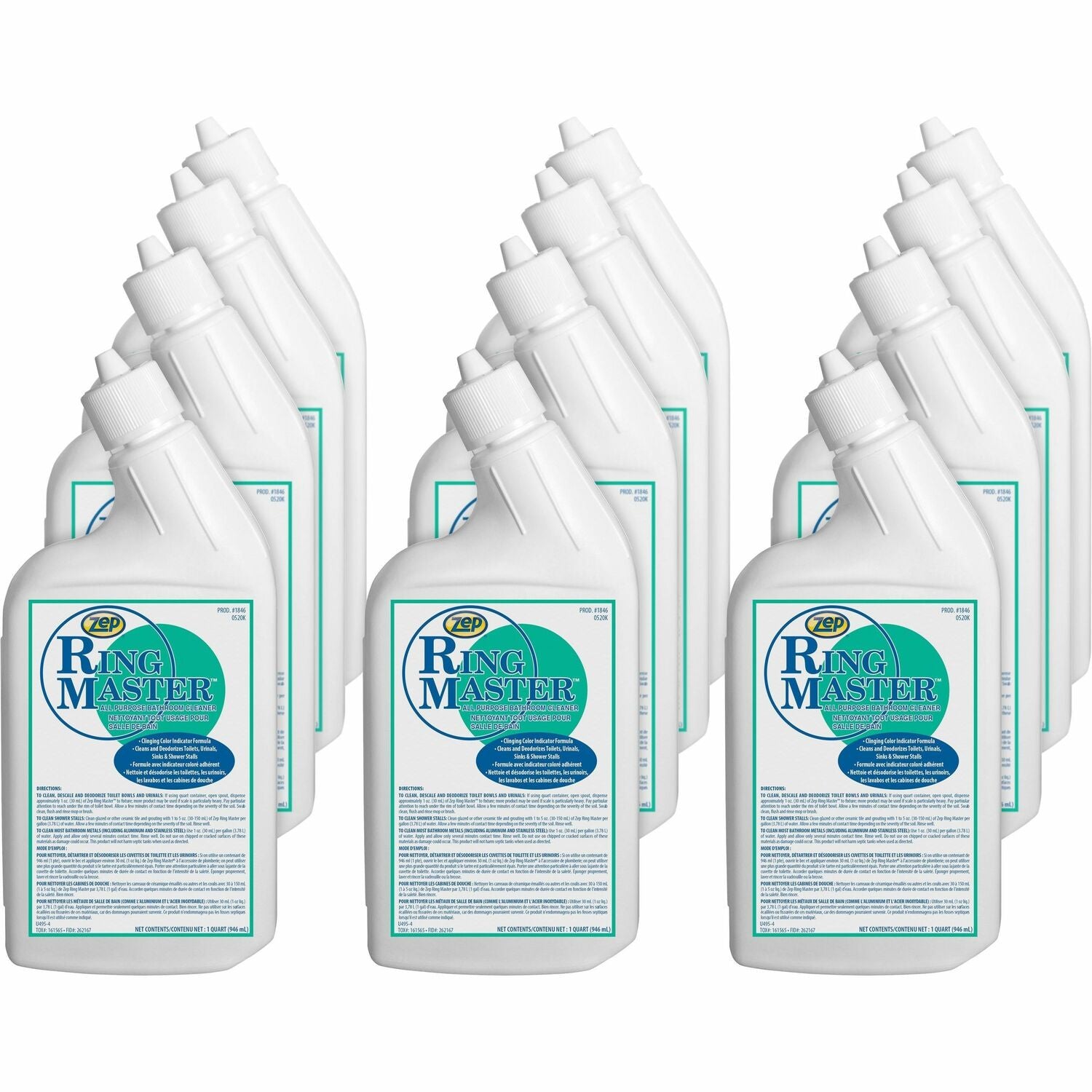 Zep Inc. 184611 Ring Master All-Purpose High Acid Cleaner, Liquid, 32 fl oz (1 quart), 12/Box, Lime Green - Box of 12 ZPE184611
