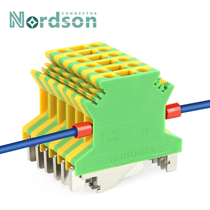 USLKG-2.5/3/5/6/10N Terminal Blocks Two-color Ground Wire Connector UK 34A-101A 800V Track Copper Conductor Electronic Wiring
