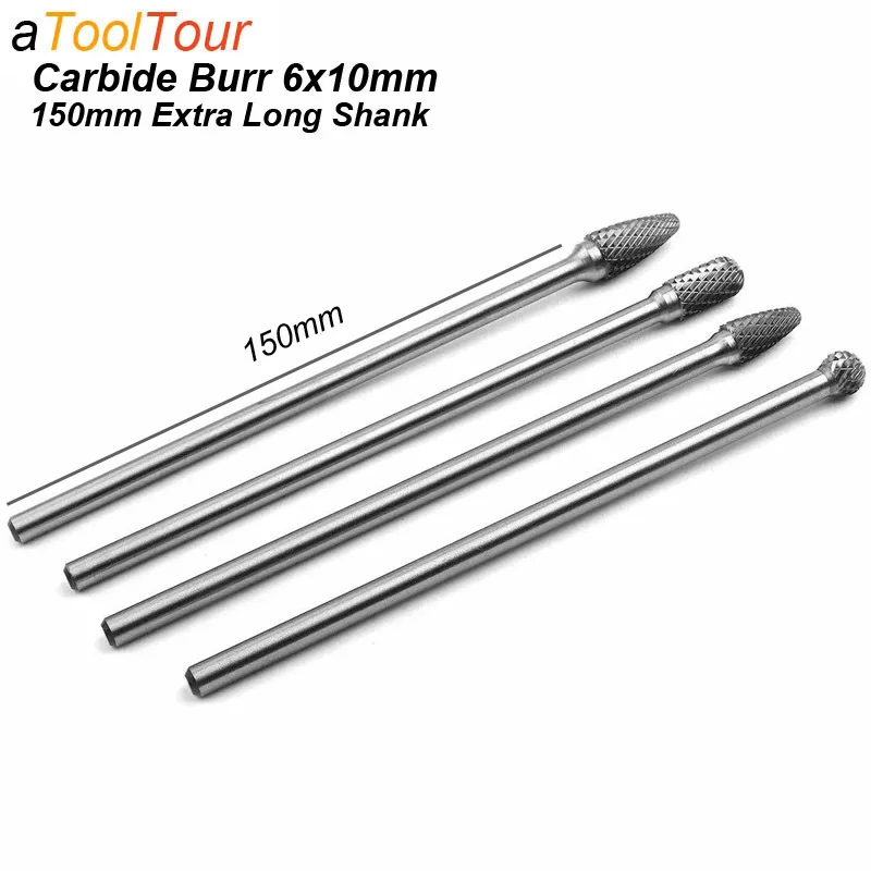 150mm Extra Long Shank 6x10m Single Double Tungsten Carbide Burr Die Grinder Abrasive Tool Rotary Cutter Wood Steel Metalworking  Read more