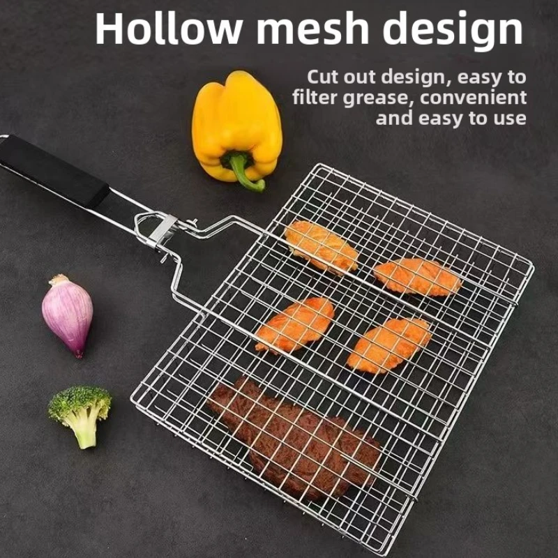 Grill Basket Folding Portable Stainless Steel BBQ Grill Basket With Handle for Fish Vegetables Shrimp Cooking Accessories  Read more