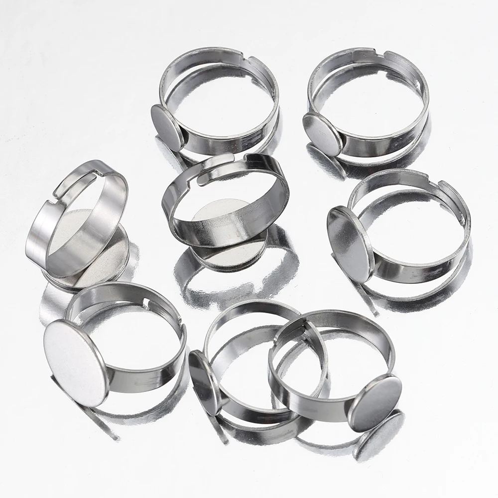 10pcs 304 Stainless Steel Ring Settings Adjustable Ring Bezel Blank Round 8/10/12/14/15mm Cabochons Base for DIY Jewelry Making  Read more