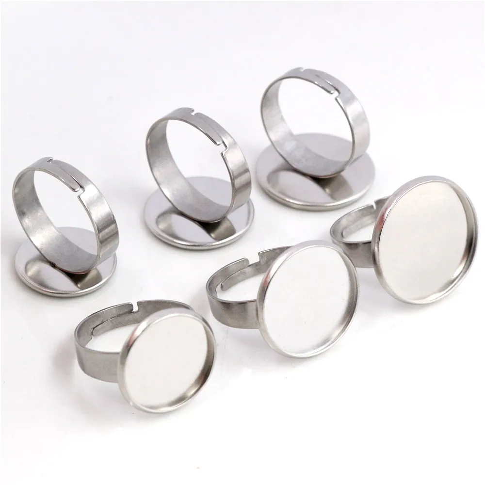 10pcs Stainless Steel Adjustable Blank Ring Base Fit 10/12/14/16/18/20/25mm Glass Cabochons Tray For DIY Ring Jewelry Making  Read more