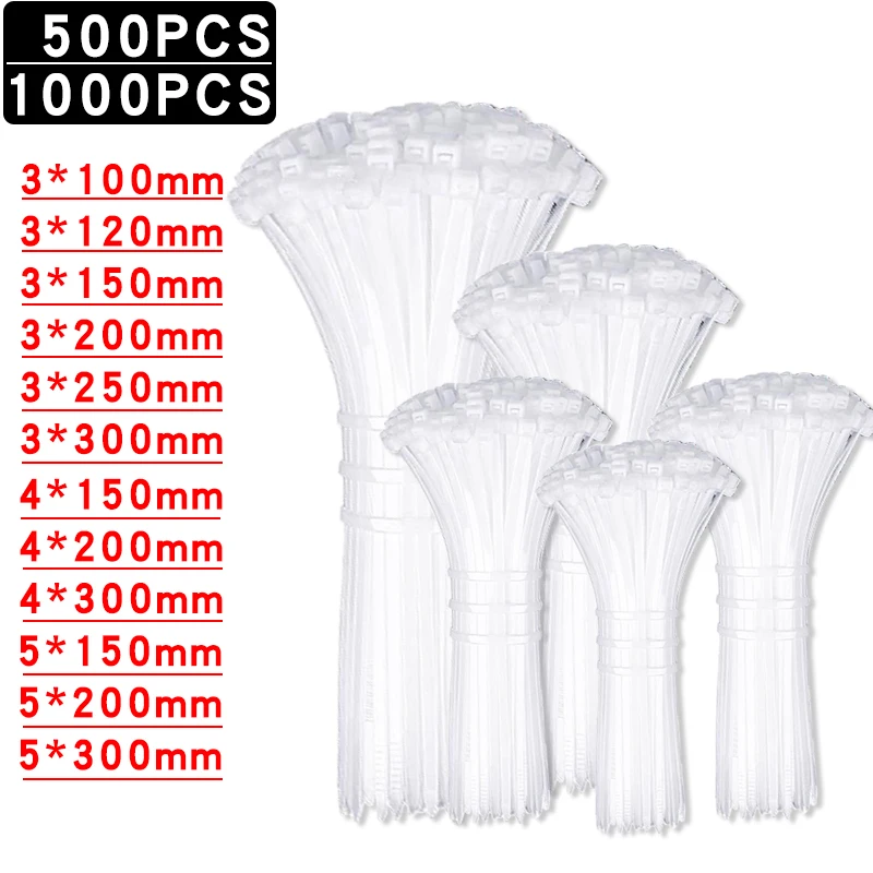 500/1000PCS/bag Self-locking Plastic Nylon Tie White Zip Wraps Strap Nylon Cable Tie Set Fastening Ring Loop Wire Wrap  Read more