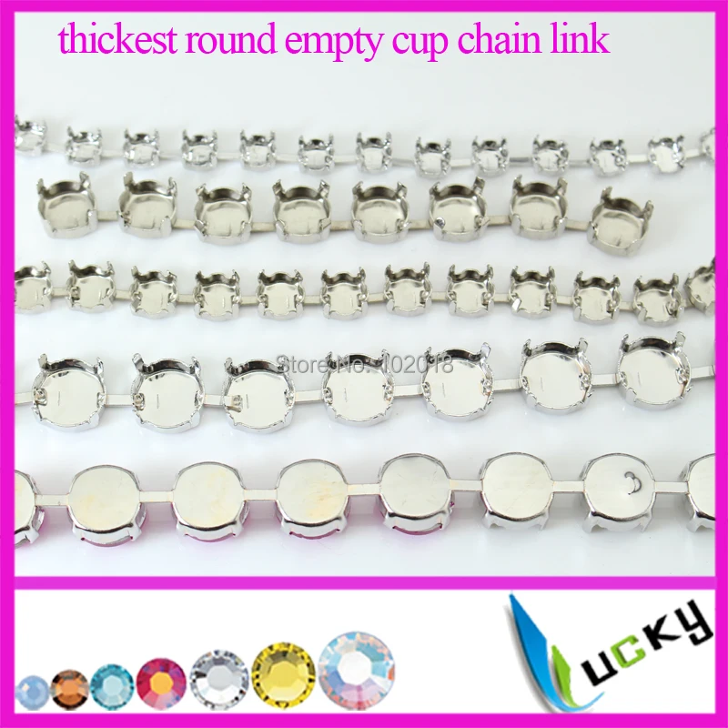 5 yards Stronggest Thickest 6mm 8mm 10mm 12mm 18mm round empty rivolis chain link for crystal settings silver plated metal claw