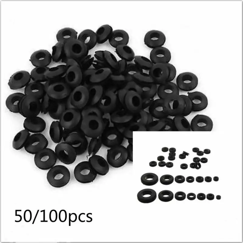 100pcs~50pcs Rubber Grommet Gasket Kits for Wire Cable Black Assortment Set  Read more