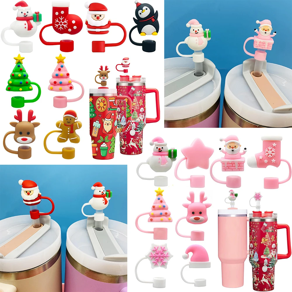 3D Snowman Christmas Silicone Straw Topper, Straw Caps for Stanley Glass Cup, with 30&40Oz Tumbler with Handle Dust-Proof Reusable