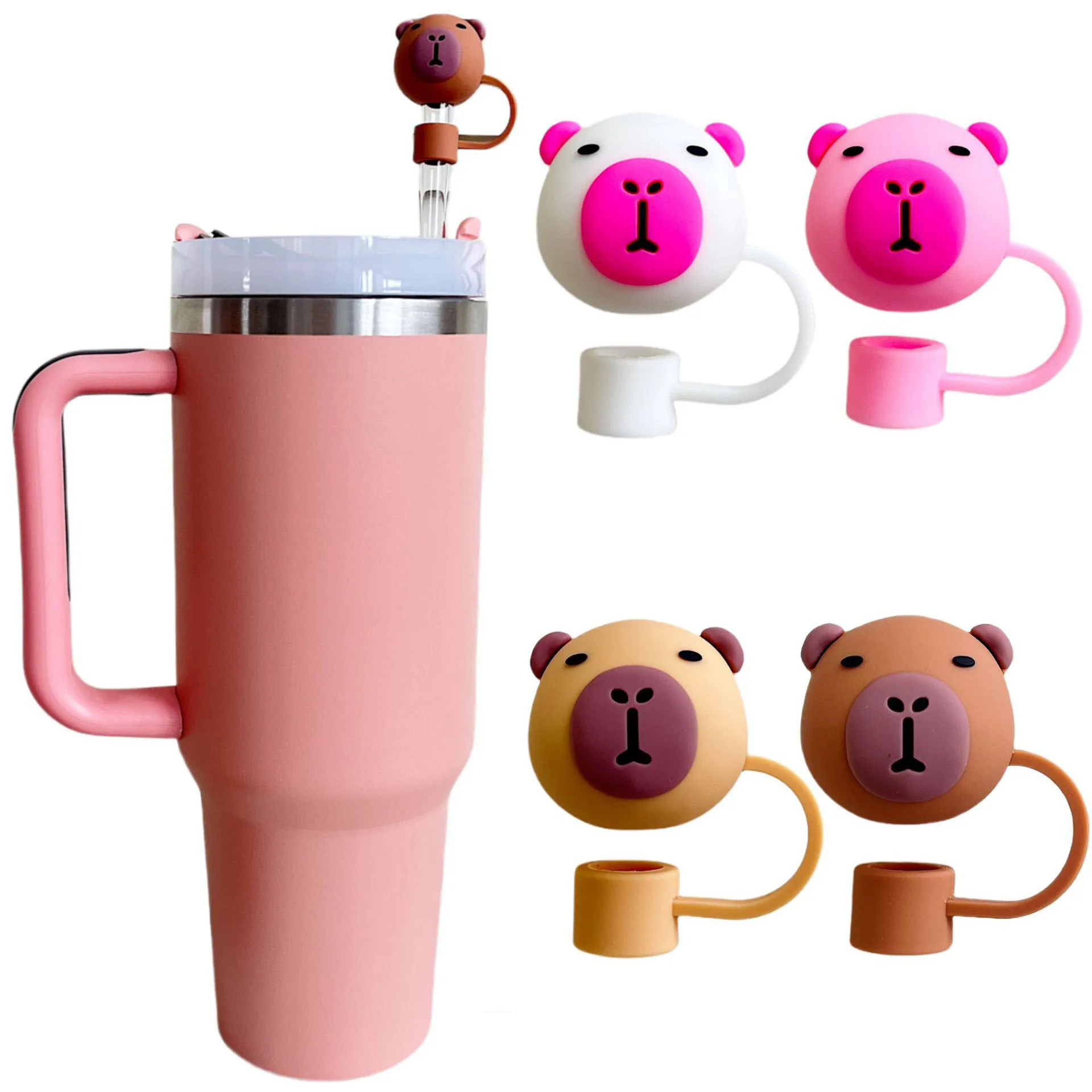 3D Capibara Cute Cartoon Silicone Straw Topper, Straw Caps for Glass Cup, with 30&40Oz Tumbler with Handle Dust-Proof Reusable