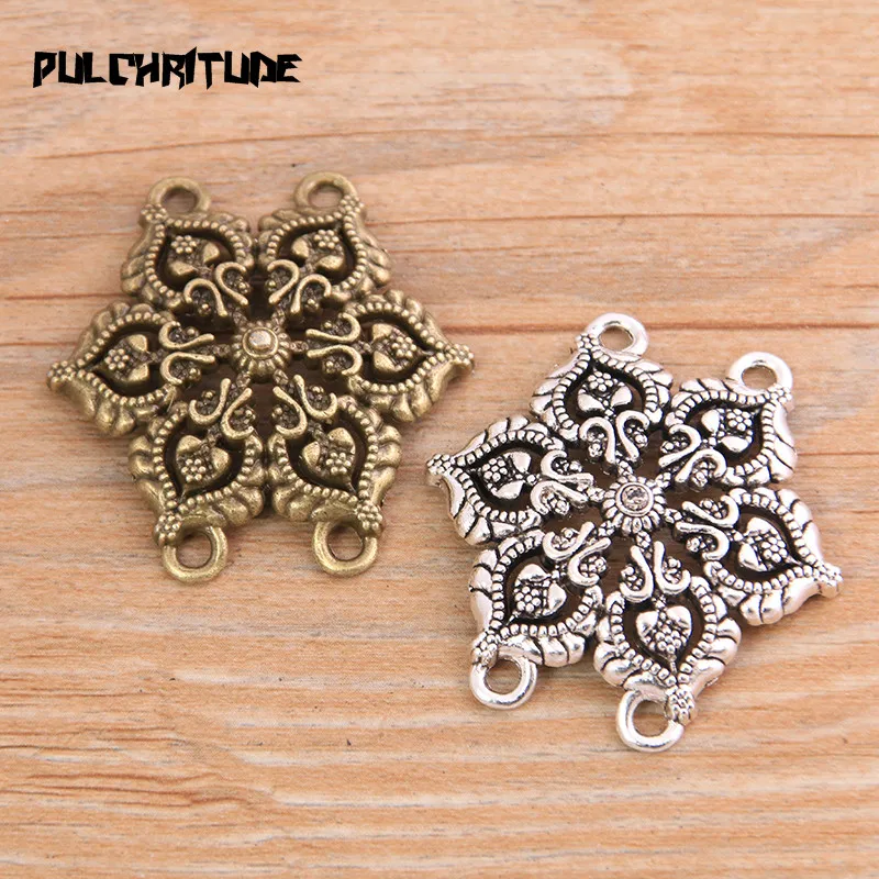 PULCHRITUDE 4pcs 35*36mm New Product Two Color Zinc Alloy Hollow Flower Porous Connectors Jewelry Making DIY Handmade Craft