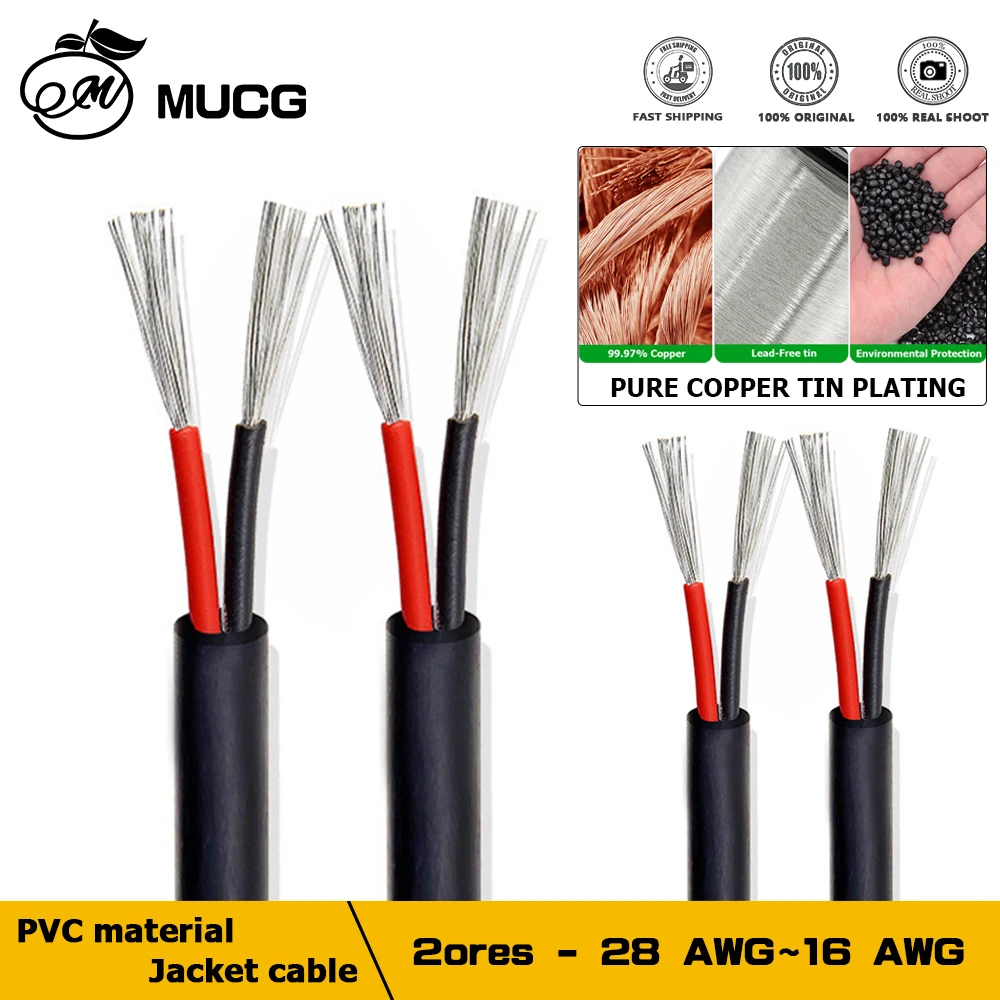 2 Pin cable red black Tinned Copper wire Jacket wire led DC 5V 9V 12V PVC Car Power 2C Electronic cable 16 18 20 22 24 26 28 AWG