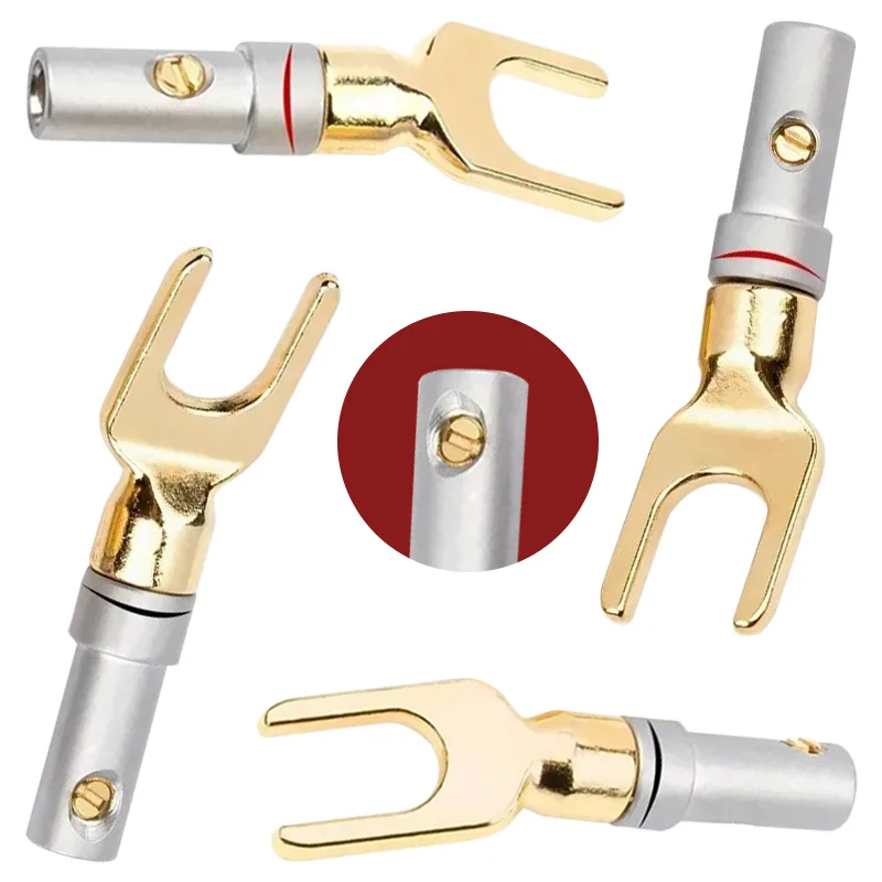 4Pcs Y/U-Shape Screw Fork Audio Spade Speaker Cable Wire Connector Gold Plated Banana Plug Y U Type Banana Connector