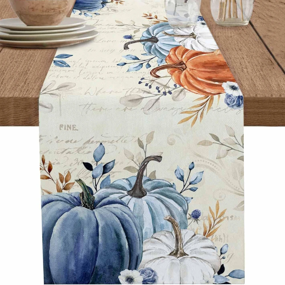 Thanksgiving Decoration Linen Table Runner Blue Pumpkin Dresser Table Runner Vintage Kitchen Table Wedding Party Accessories  Read more